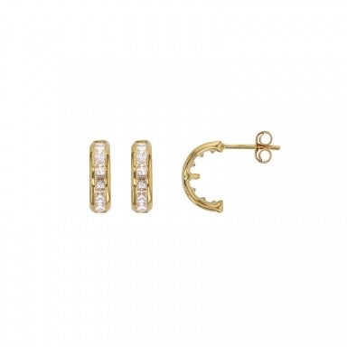 Demi créoles, 7 oxydes de zirconium taille carré, Or 18K