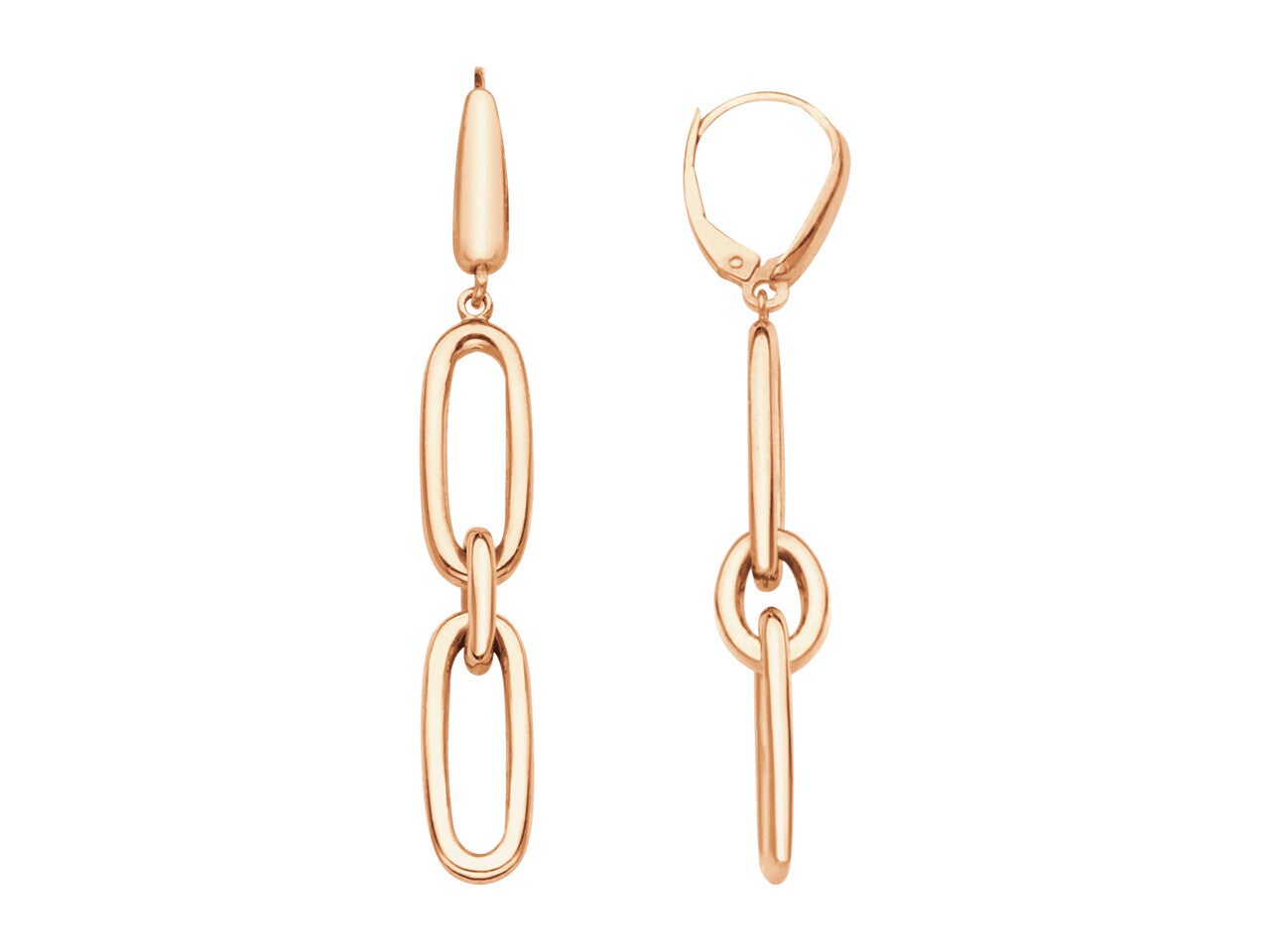 Boucles d'oreilles mailles alternées Rectangles et Ovales , Or ROSE 18k