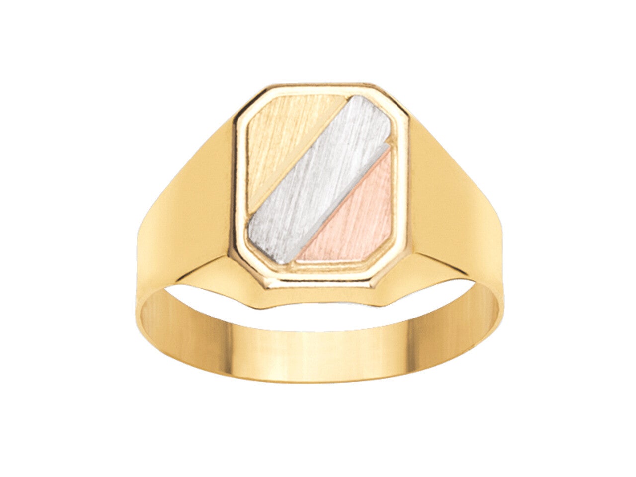 Chevalière Carrée Unie Tricolore en Or 18K : Un Équilibre de Luxe .